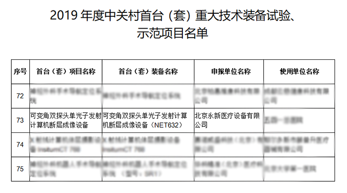 近日,由公司自主研制的NET632型可變角雙探頭SPECT榮獲2019年度中關村首臺(套)重大技術裝備試驗、示范項目。這是公司繼動物PET/SPECT/CT后又一創新產品入圍此項目。